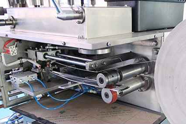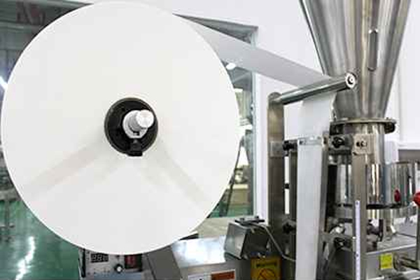 The machine uses filter paper rolls to manufacture three-sided seal filter bags, or the filter bag can be made with string and a tag.