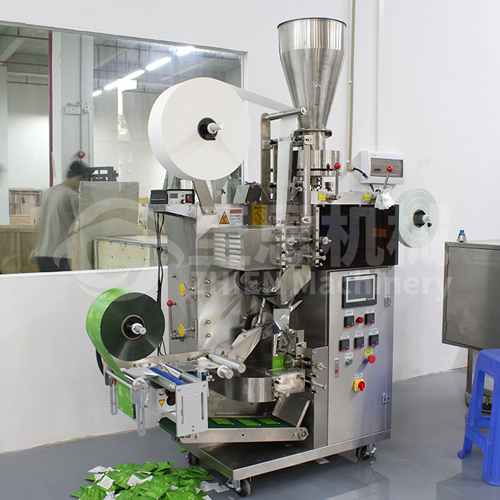 The machine automatically completes the tea product process of feeding, measuring, filling, filter tea bag formation, sealing with string, and tag attachment.